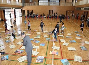弘前の名所や歴史などをテーマに作成した手作りの大型カルタを使ったカルタ大会を実施しました。小学生と中学生や保護者、地域の方々が楽しく触れあう機会となりました。