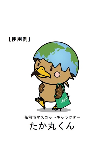 初めて「たか丸くん」を見た人が、何のキャラクターであるかわかるように、「弘前市マスコットキャラクターたか丸くん」と記載して使用するようにしてください。(スペースがない場合は、「たか丸くん」だけでも可)