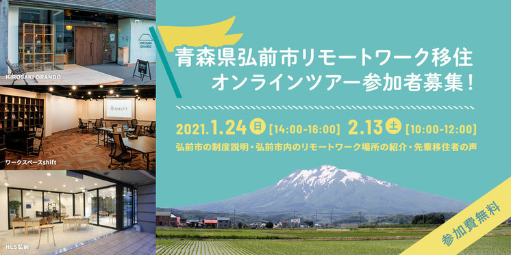弘前市では「リモートワーク移住」を推進すべく、「リモートワーク移住オンラインツアー」を下記の日程で開催することといたしました。