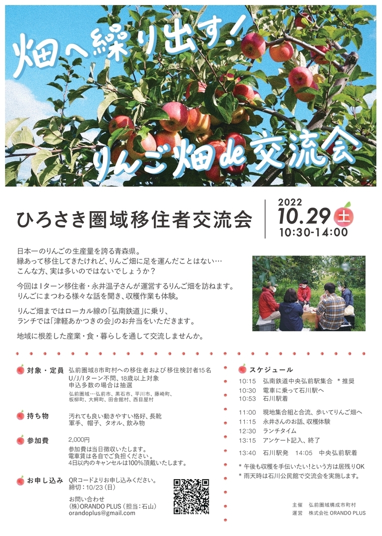 弘前圏域8市町村に移住してこられた皆さんが繋がり、地域コミュニティに入っていくための交流会を開催します!