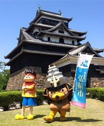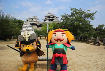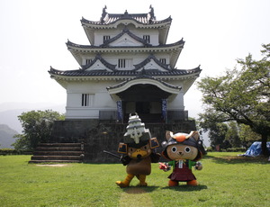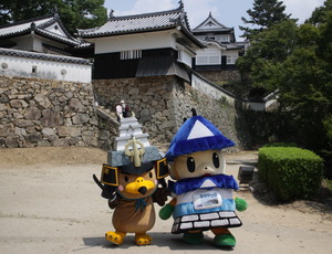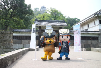 お城でのPRには丸亀市のご当地キャラクター「京極くん」も