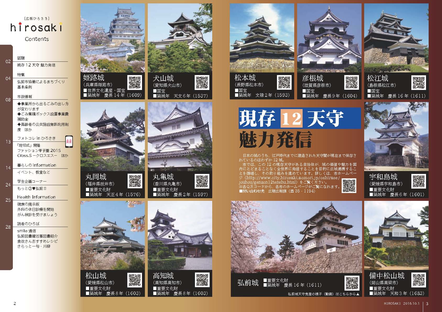 平成27年10月1日号「広報ひろさき」に現存天守の記事が掲載されました。