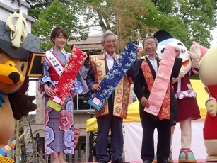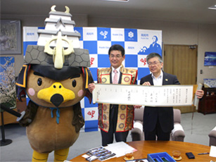 武将隊タや丸岡高校の生徒さん、そして市民の皆さんの立ち会いの元、坂井市長さんに