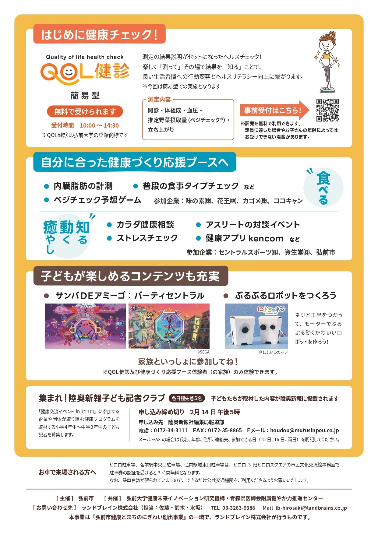 本事業は弘前市が実施する「弘前市健康とまちのにぎわい創出事業」として行われます。