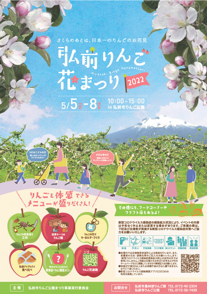 りんごの花が可憐に咲き誇るりんご公園で、5月5日(金祝)から5月7日(日)まで「弘前りんご花まつり」を開催します!ご家族やお友達と一緒に楽しくお過ごしください。