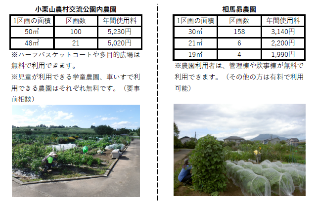 ・小栗山農村交流公園内農園についてはこちらをご覧ください。