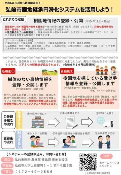 令和7年12月3日付で弘前市園地継承円滑化システムに新たな情報が追加されました。