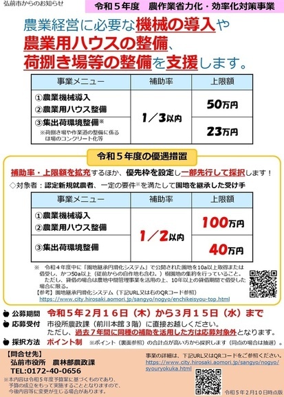 ア:弘前市農作業省力化・効率化対策事業(本事業)