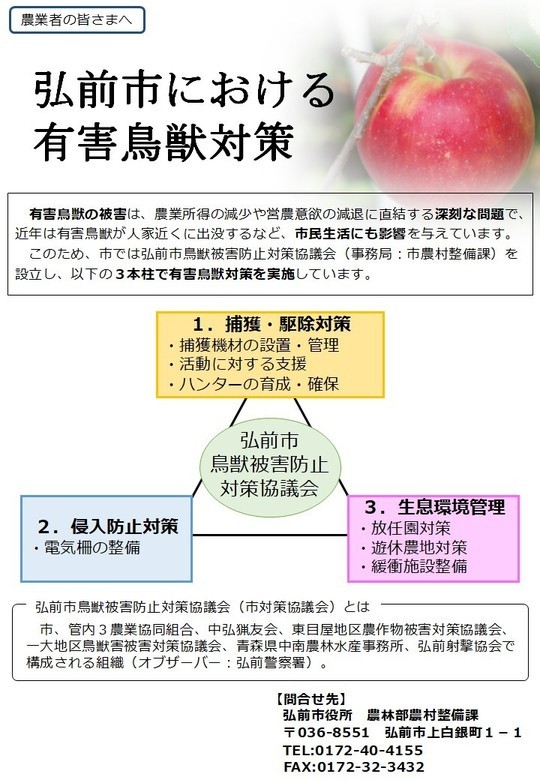 「令和7年度版 弘前市における有害鳥獣対策」を掲載いたしました。