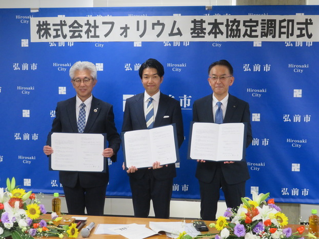 令和7年8月26日、株式会社フォリウム、青森県、弘前市の三者により、基本協定調印式が執り行われました。