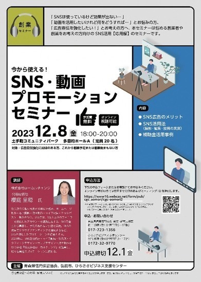 青森県では、「創業・起業は誰に相談すればいいの?」「起業した先輩の話を聞いてみたい!」「創業・起業の際に利用できる支援制度にはどのようなものがあるの?」といった疑問やご要望にお応えするため、創業に向けて専門家のアドバイスや起業家の体験談のほか、県内創業支援制度について聞くことができるオンラインセミナーを開催します。