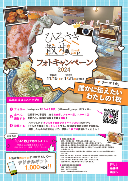 ・ハッシュタグ「#ひろさき散歩フォトキャン2024」を付けて、