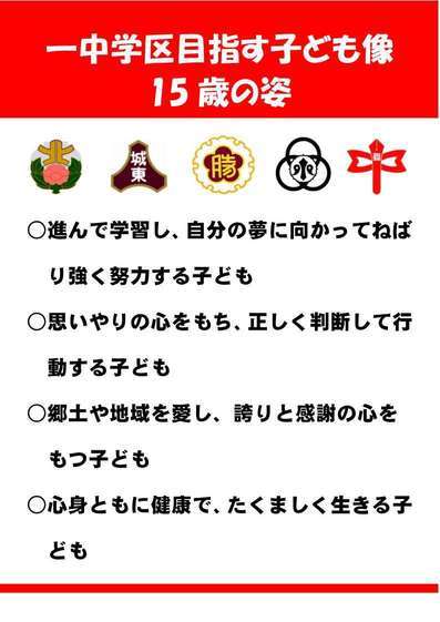 ●1 目指す生徒像(15歳の姿)〈一中学区目指す生徒像〉