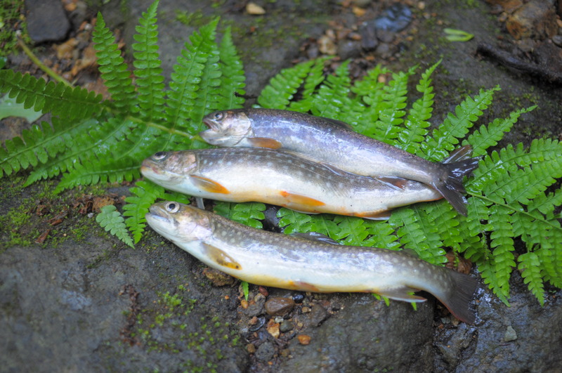 魚はイワナやヤマメ、山菜はミズやウド、キノコ類を採ることができる。