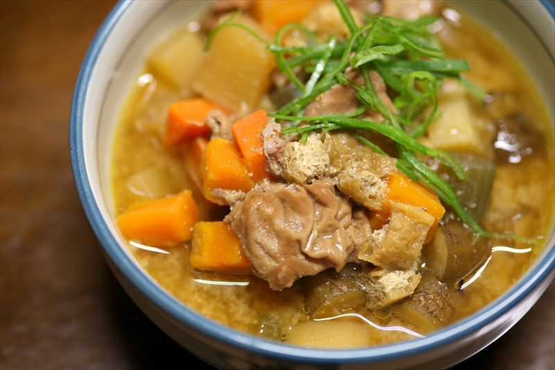 相馬名物!お祭りやイベントの時に目にする人も多いはず。もつ煮込みと津軽の伝統食「けの汁」を合わせた津軽の新たな名物料理。