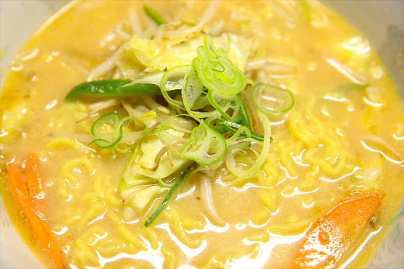 細いちぢれ麺と濃厚な味噌スープがたまらない一品。よく炒められた野菜との相性も抜群。