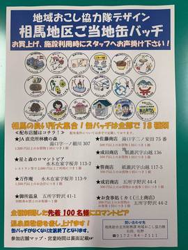 皆様大変な時期ではありますが、消毒やうがい手洗いの励行及びマスク着用にて、缶バッヂ集め&相馬の魅力発見をお楽しみ頂ければと思います!