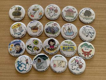 よそ者目線で感じた相馬地区の魅力をギュギュ~ッと18種類に凝縮し作成した缶バッヂは、