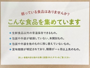 もしご家庭に眠っている食品がありましたら、ボックスに入れてみませんか?