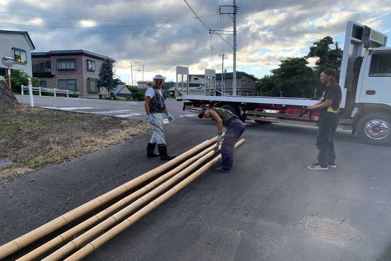 次に、幟をつける竹を練習会場に運びます。