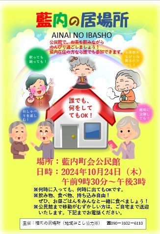 10月24日(木)、藍内の公民館をお借りして「藍内の居場所」を