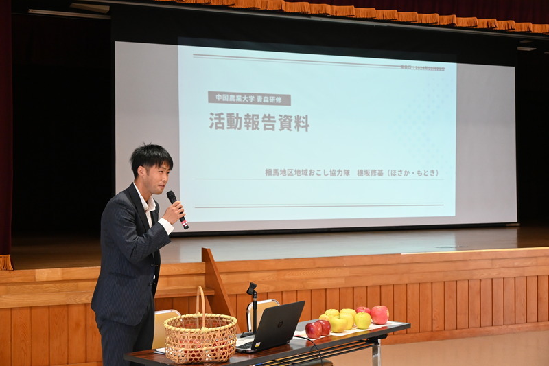 県職員による農政についての話、市職員による弘前・相馬地区の概要の話に続いて、協力隊の活動を紹介しました。