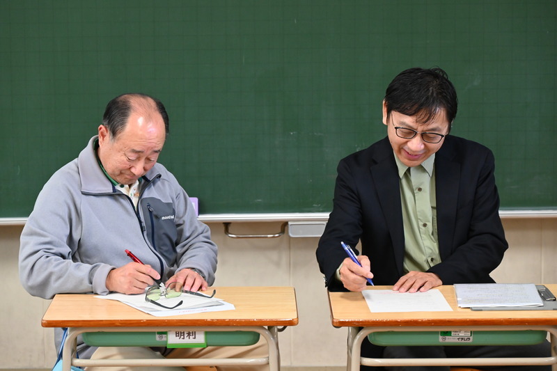 今回は「まつりに地域の人がたくさん来るためにはどうしたらいいか」という学習課題に対するアイデアを実行委員のメンバー(三上昇さん、三上雄一さん)に披露しました。