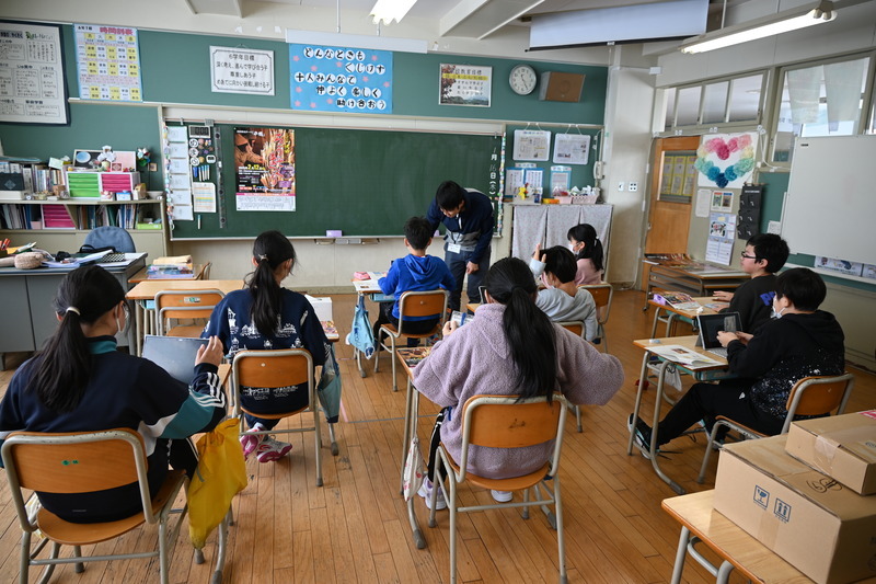 1月16日(木)、弘前市立相馬小学校でチラシ・ポスターづくりのアドバイスをする出前授業を行いました。
