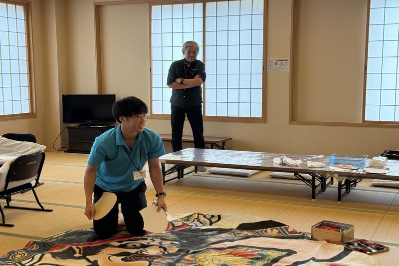 協力隊は季節に応じたレクリエーションを担当し、ねぷた絵うちわ作りを行いました。