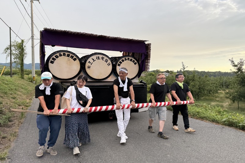 協力隊は囃子方で参加してきました。加賀隊員は笛、穂坂は太鼓を担当しました。