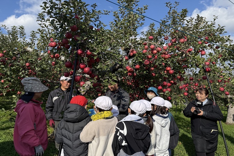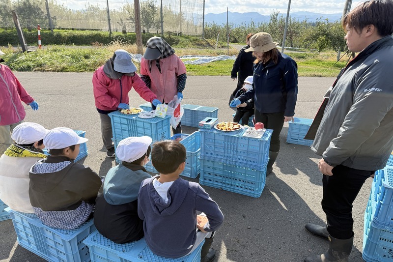 11月4日、弘前市立相馬小学校3年生が「りんご学習」の一環でサンふじの収穫体験をしました。
