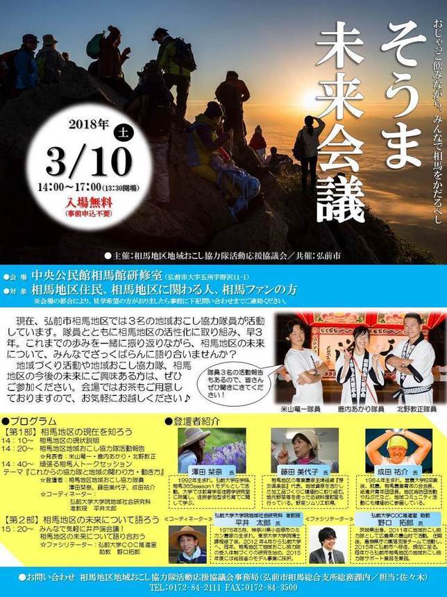 地域づくり活動や地域おこし協力隊、相馬地区の今後の未来についてご興味ある方は、ぜひご参加ください。