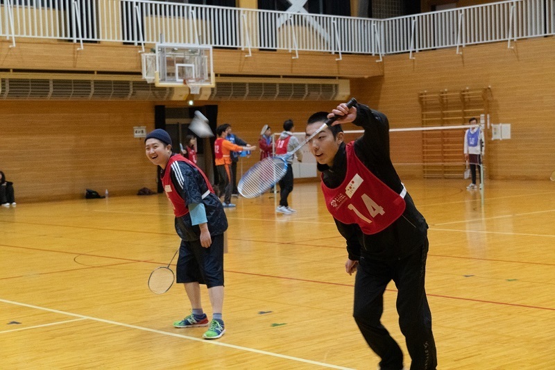 この企画は、平成18年の合併以前に比べ交流が少なくなっていると言われる相馬地区(旧相馬村)と岩木地区(旧岩木町)の交流を深めようと、両地区の協力隊と若者が企画、運営を行ったもので、昨年に続き2回目の開催となります。 当日は、42名の方にお集まりいただき、バドミントンとソフトバレーボールで白熱の試合を繰り広げました。