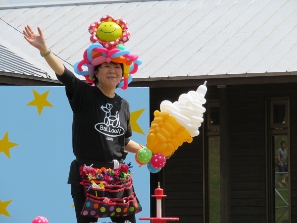 ソフトクリームに幸せの青い鳥、4つ葉のクローバーなどたくさんのバルーンアートに
