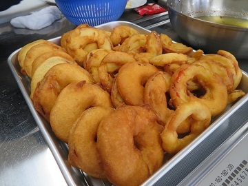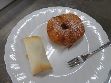 今回は、『りんごドーナツ』と『りんごチョコ春巻き』の2品を3年生の子供達と