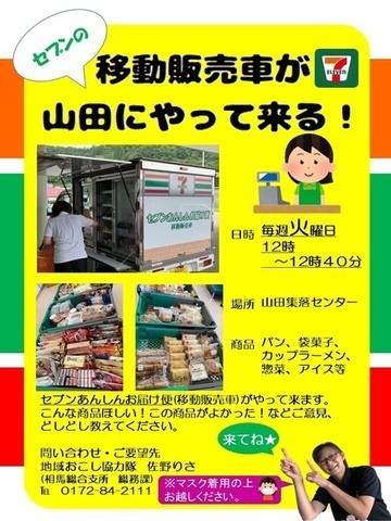 8月31日(火)から、山田集落センターにおいて『セブンあんしんお届け便』を開始致しました。