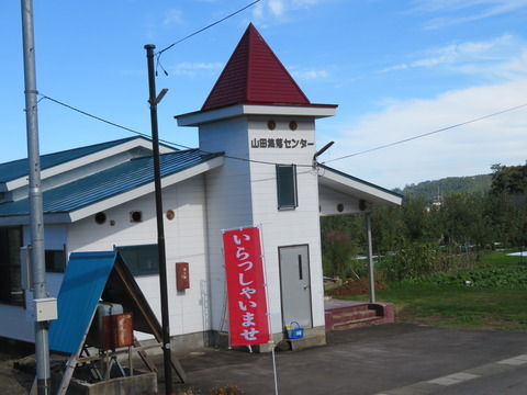出店日には、山田集落センター前に「いらっしゃいませ」の赤いのぼりが出ております!