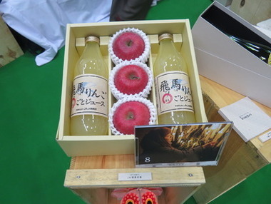 今回の出展に合わせて、JA相馬村特産販売課にもご協力いただき、飛馬りんごジュースのラベルに和紙を使用。