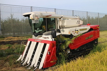私も稲刈り機に乗り、一列分 稲刈りをさせていただきましたが、ドキドキの体験でした!