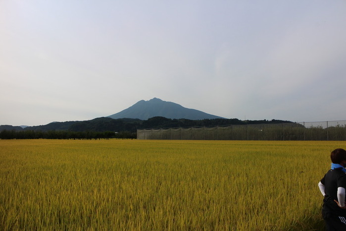 黄金色の田んぼと岩木山の風景に、農業男子の笑顔が映えます!!