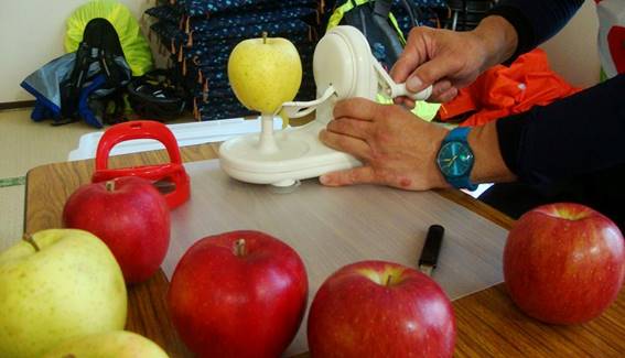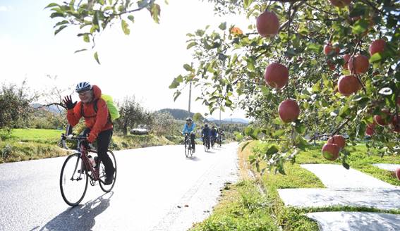 弘前を観光で訪れるお客様を想定し、駅から歩ける街中が発着地。地域おこし協力隊がサイクリング・ツアー・ガイドを務め、市街地から相馬のいいところへお客様をご案内しました。参加者は、真っ赤なりんごと赤茶に色づく岩木山が奏でる風景の中を自転車で散策した後、旬な3種のりんごや、農家のお母さん特製“紅玉たっぷりのりんごパイ”といった、この季節この地ならではの特産品を味わい、まるごと相馬を堪能しました。