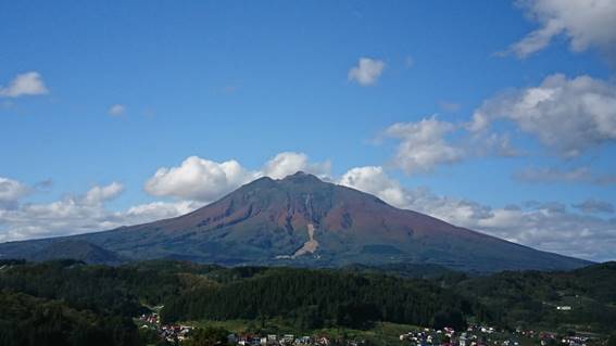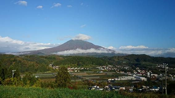 羽根山農村公園からの岩木山を望む。徐々に雨もあがってきた!