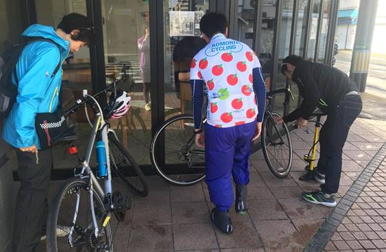 Heart Lighting Station弘前に到着後、サイクリング・ガイドと一緒に自転車をチェック!