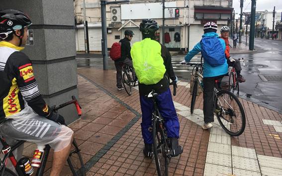HLS弘前発@土手町を出るころには雨が・・・。天候急変のため雨対策して出発!