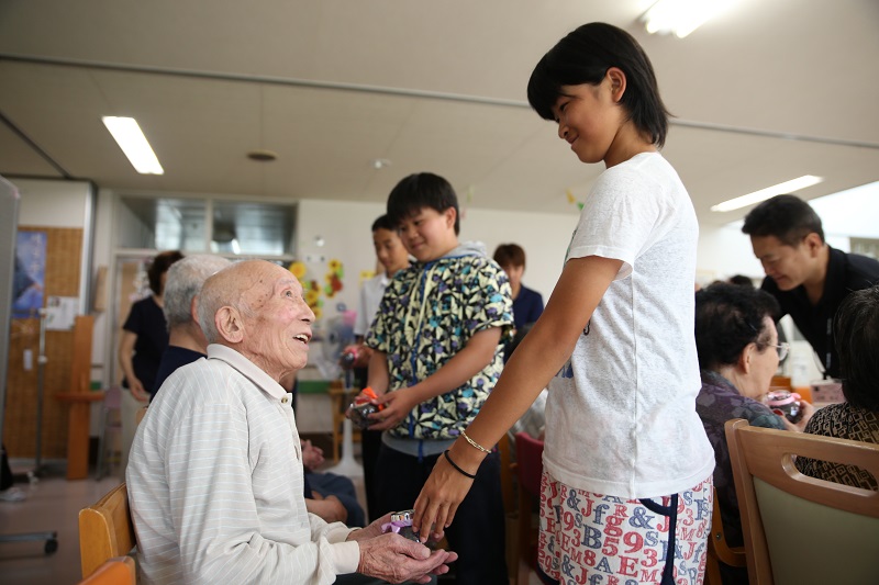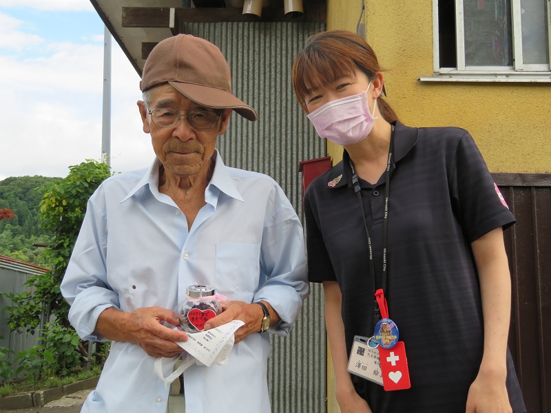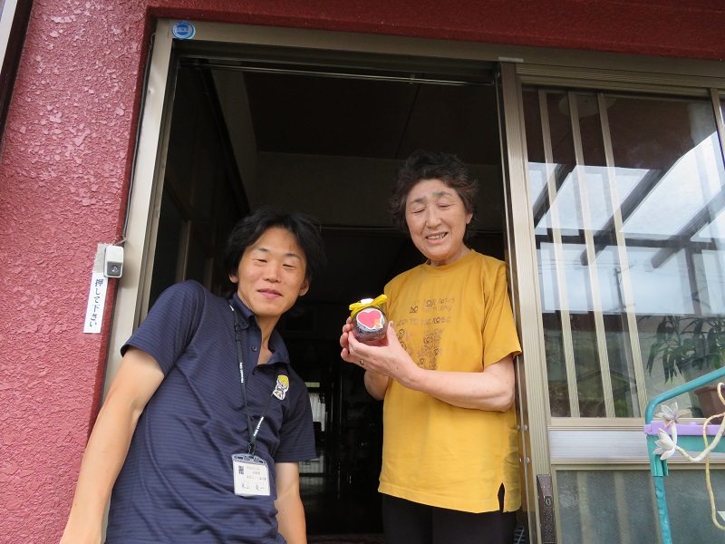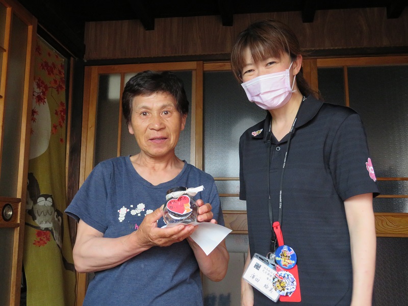 製作には相馬小学校なかよしクラブの子どもたちに協力してもらい、「元気でいてね」「長生きしてね」といった心温まるメッセージを添えて、特別養護老人ホーム長慶苑や高齢者教室の利用者、1人暮らしの方にはお宅を一軒一軒回ってお届けしてきました。