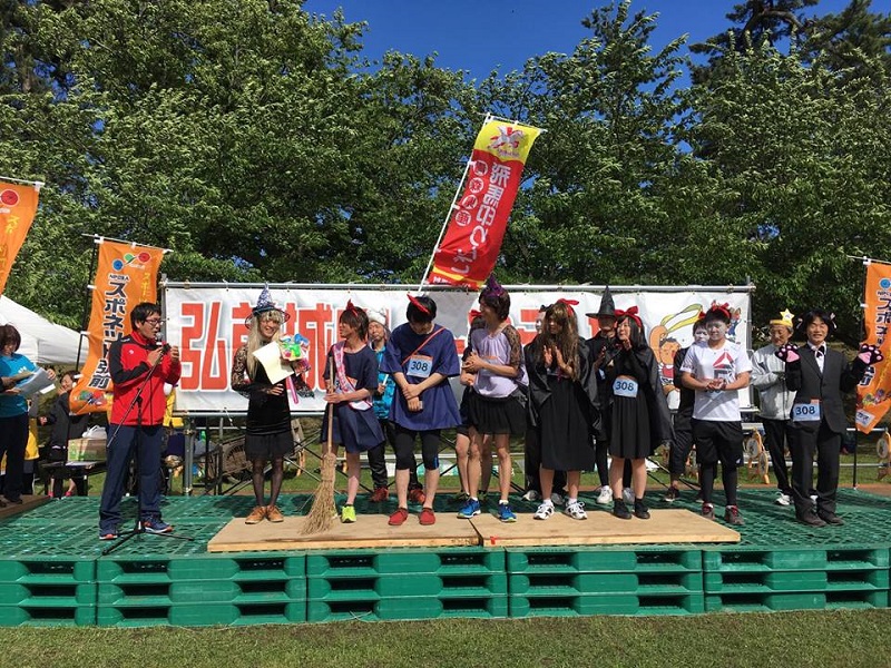 (弘前城リレーマラソンは弘前公園内を会場にチームで協力して走るイベントで、今では約2400人が出場する大きなイベントになってきています。)
