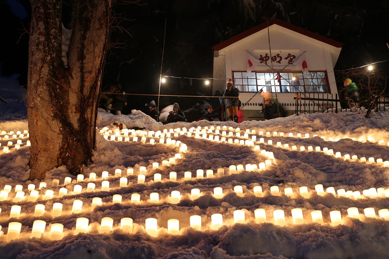 人の手で灯した灯りは、なお明るく温かく感じられるのは気のせいでしょうか?電飾によるイルミネーションでは味わえない、沢田ろうそくまつりならではの灯りだと思います。