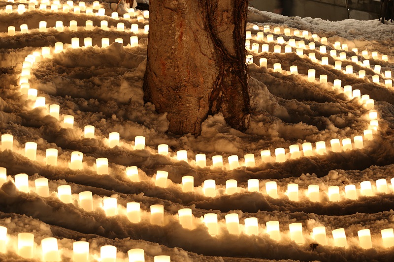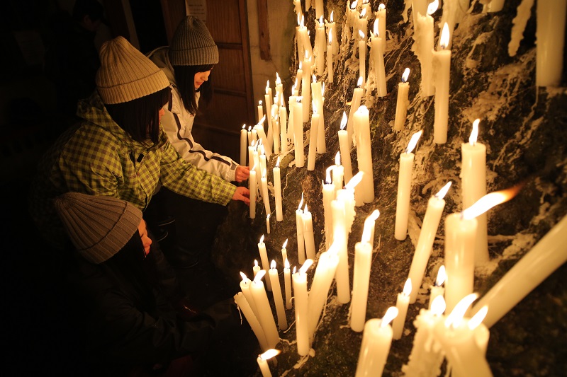 ろうそくが灯ると、辺り一面は幻想的な雰囲気に包まれ、歓声が上がりました。