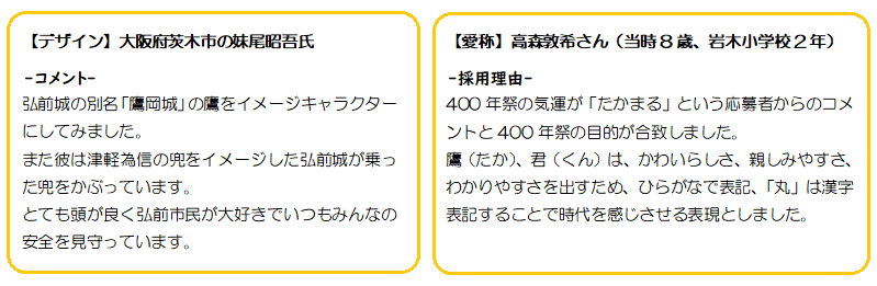 平成21年11月 弘前城築城400年祭マスコットキャラクターとして誕生