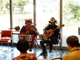 ロビーでは28日午後、弘前大学マンドリン倶楽部による演奏と楽器指導が行われました。コンサート終了後、マンドリン男子がなんと、甲冑に着替えてマンドリンとギターを演奏してくれました。世界初!?の試みかもしれません。イベントに参加して下さった皆様、ありがとうございました。